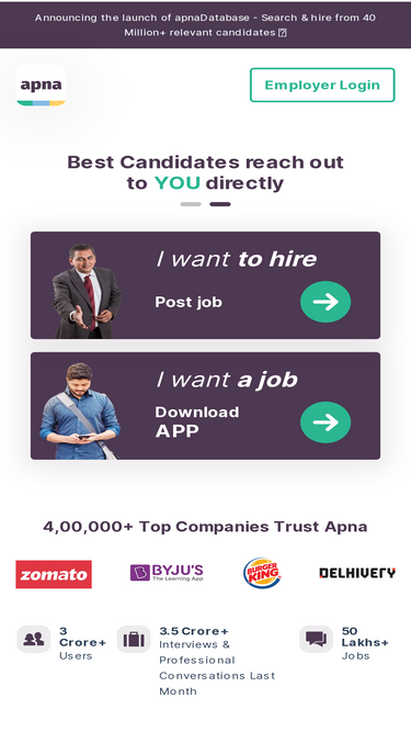 84%Explore Apna’s transparent and flexible pricing plans, designed to suit businesses of all sizes. Whether you're a growing startup or a leading enterprise, Apna provides cost-effective recruitment solutions to meet your unique hiring requirements