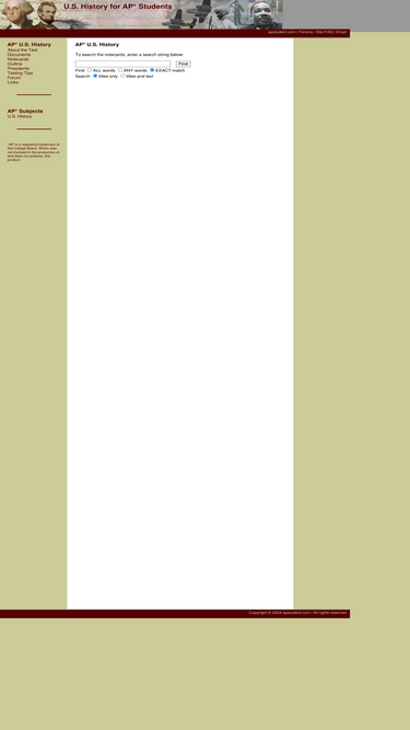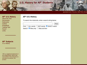 100%100% Free AP Test Prep website that offers study material to high school students seeking to prepare for AP exams. Enterprising students use this website to learn AP class material, study for class quizzes and tests, and to brush up on course material before the big exam day.