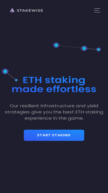 83%StakeWise offers an easy and secure way to stake ETH. Earn ETH rewards with hassle-free liquid staking by StakeWise, trusted by over 5,000 users. Stake solo or pool ETH with others, and use your stake to borrow, farm, and trade in DeFi.