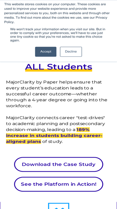 MajorClarity offers a one-stop solution to K-12 schools for career readiness, college readiness, academic planning, work-based learning, and micro-credentials.