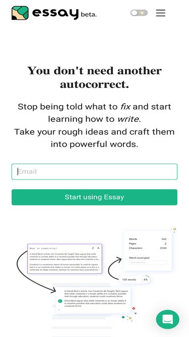 83%Essay helps you write clearly and confidently, developing your ideas with tools that build real writing skills. No shortcuts, just better writing.