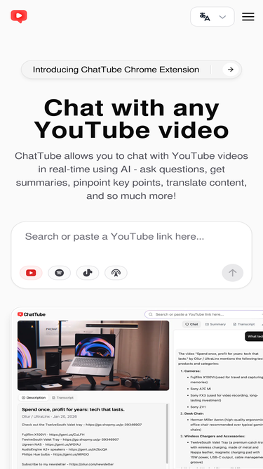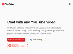 91%chattube allows you to chat with youtube videos in real-time using ai - ask questions, get summaries, pinpoint key points, translate content, and so much more!
