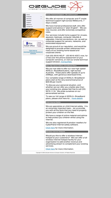 ozguide internet & computer solutions offers onsite technical computer support, as well as hardware and software sales, upgrades and network services. we offer dialup and broadband adsl internet connections, as well as email, web and domain name hosting.
