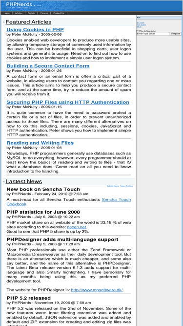 100%phpnerds.com - wide variety of articles and tutorials related to php programming and design, tailored for both beginners and expert programmers.