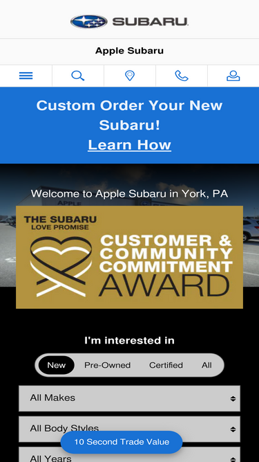 apple subaru of york, pa, is an award-winning dealership that offers exclusive car discounts on a large selection of new subarus, used subarus, and used suvs.