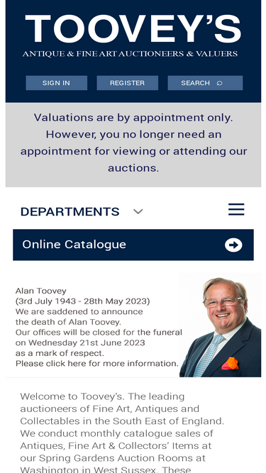 81%toovey’s are the leading auctioneers of fine art, antiques and collectables in south east england. we conduct monthly catalogue sales of antiques, fine art & collectors’ items in west sussex.