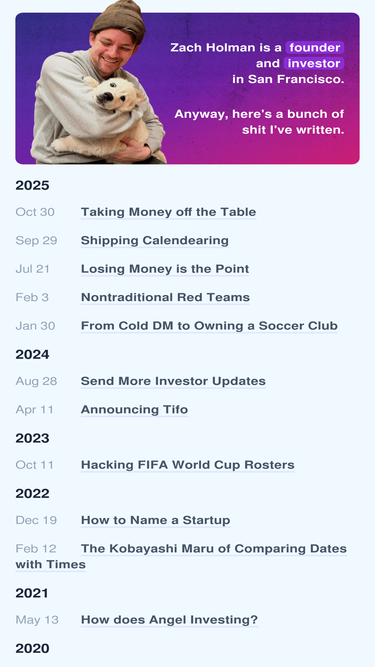 written pieces, talks, and other bits by zach holman.