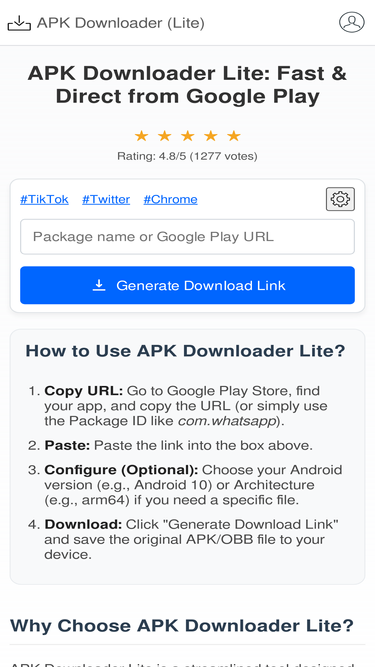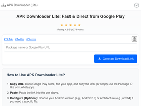 92%Download the latest free and paid Android apps directly from the Google Play online store with the Raccoon APK Downloader. Faster and safer than Evozi or any other online APK downloader.