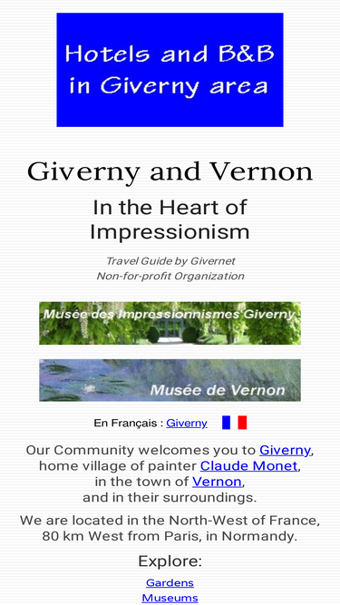 100%giverny and vernon tourist guide, claude monet's house and gardens, tourist informations, hotels and restaurants. claude monet's life and impressionist art. impressionism, museums, gardens, castles. a trip close to paris in normandy france.