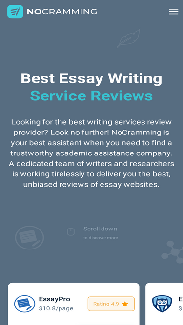 87%Most honest essay writing service reviews are at NoCramming. Get to know the best essay services to turn to with academic matters in times of need!