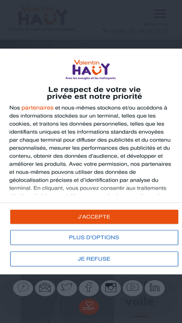 100%Afin d’améliorer la facilité d’utilisation et la performance de ses sites internet ainsi que leur adéquation avec vos attentes, l’association Valentin Haüy est susceptible d’utiliser des « cookies ».