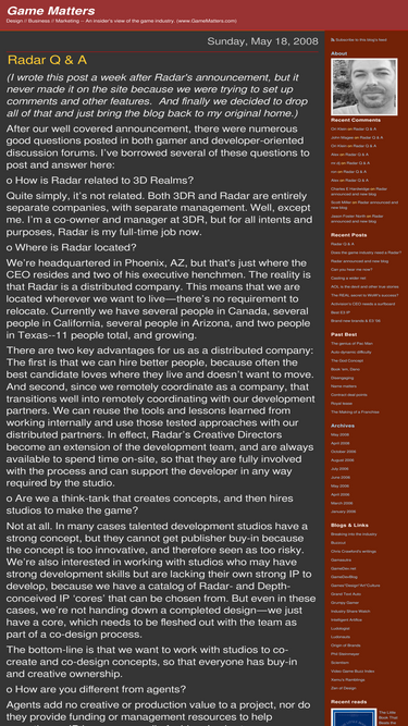 100%design // business // marketing -- an insider's view of the game industry. (www.gamematters.com)