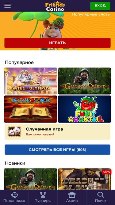 78%Для всех желающих начать играть в азартные игры без ограничений важно, чтобы в казино Френдс регистрация была пройдена. Завершите Friends casino регистрацию на сайте и получите бонусы на счет.