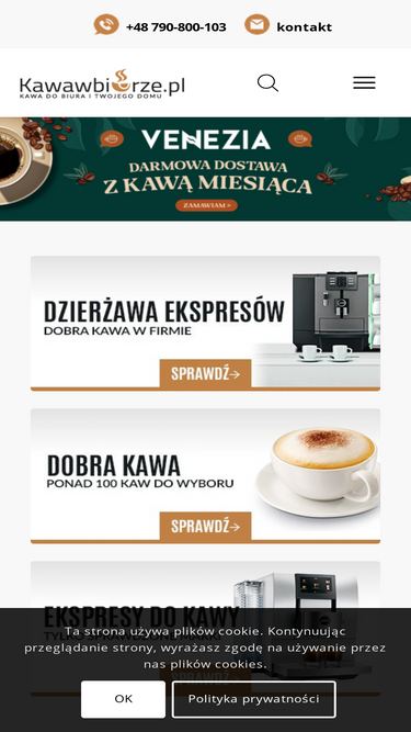 73%Sklep z kawą ziarnistą, rozpuszczalną, kapsułkami. Szeroki wybór ekspresów do kawy do domu i do biura takich firm jak Jura, Saeco czy Nivona. Zapewnij najlepszą kawę w Twojej firmie.