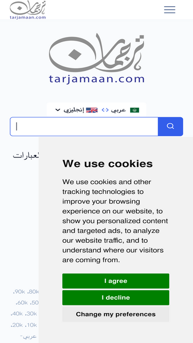 89%ابحث عن ترجمة الملايين من الكلمات والعبارات من وإلى العربية. ترجمة مصحوبة بأمثلة سياقية