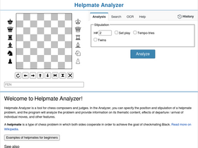 85%online tool for chess composers and judges. it solves and analyzes helpmate problems, detects themes and move effects.