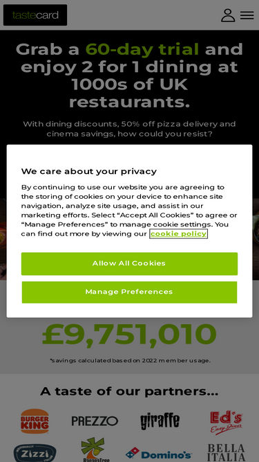 100%Looking for the latest restaurant deals? tastecard is the ultimate restaurant card. Save more on your favourite restaurants, activities & more with tastecard.