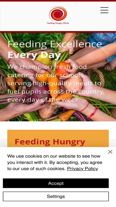 93%At Feeding Hungry Minds, we champion fresh food catering for our schools, serving high-quality meals to fuel pupils across the country, every day of the week.