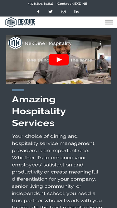 85%Contact NEXDINE Hospitatlity to learn more about dining solutions for corporate offices, healthcare, senior living facilities, and educational institutions.