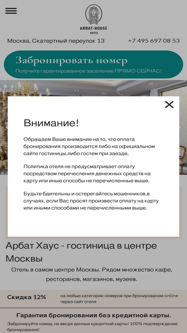 92%Гостеприимная атмосфера и домашний уют выгодно отличают отель Арбат Хаус от других. Вас ждут приветливое обслуживание, безупречная чистота и индивидуальный подход. Все гости столицы смогут насладиться отличным сервисом и отдыхом в тихих и безопасных переулках Арбата. Отель предоставляет все условия как для полноценного отдыха, так и для плодотворной работы. В отеле круглосуточно ведется видеонаблюдение и работает служба безопасности. Дети до 3-ех лет проживают с родителями бесплатно.