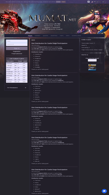 93%MuMat.net - MU Online Season 2+ private server. Exp: 150x, Drop: 60x, Perfect PvP Balance, Friendly Community.