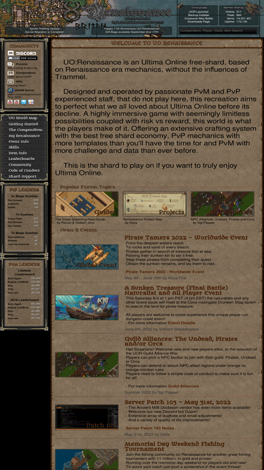 100%renaissance is the best ultima online free play server based on balanced and perfected renaissance era mechanics. play this free mmorpg and enjoy an ultima online server that actually feels like classic uo! develop your avatar and explore all that uo renaissance has to offer.