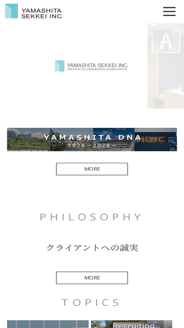 85%株式会社山下設計のコーポレートサイトです。「クライアントへの誠実」という社是のもと、真摯にクライアントに向き合い、チーム力を強みとして設計を取り巻く幅広いサービスを提供しています。竣工後も長期にわたり評価される建築を形にすることを通じて、社会に新たな価値を提供していきます。