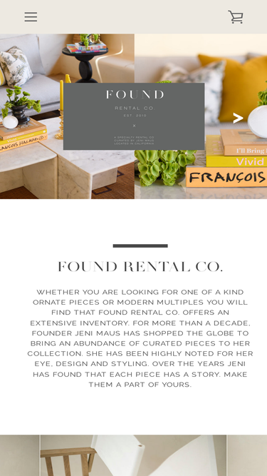 100%Found Rental Co is an event furniture and prop rental company leading the industry by creating unique designs not found elsewhere. Found Rentals was the first vintage rental company in the US founded by Jeni Maus back in 2010. Found Rental Co is used for weddings, corporate events, film, parties, etc.
