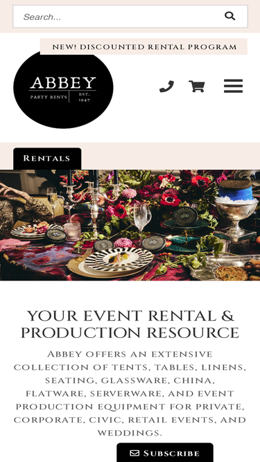 28%abbey party rents has been serving northern california since 1947 with equipment and services for all types of events - weddings, holiday gatherings, corporate functions, and any other event imaginable! our knowledge will ensure that renting from abbey will ease the stress of planning and executing any event!