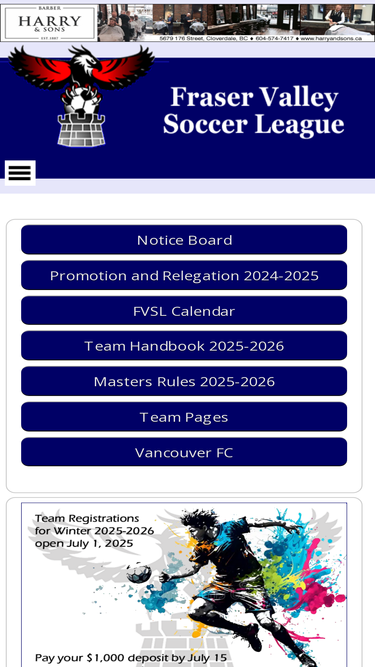 73%team contacts for fvsl men's soccer league. more than 110 teams in all levels from premier to u21 including three masters divisions. teams come from the lower mainland and the fraser valley.