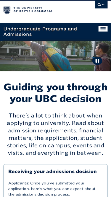 82%All you need to know about UBC's undergraduate programs, admissions requirements, application process, tuition, and campus life.