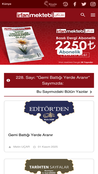 100%İrfan Mektebi; aile, çocuk, eğitim, değerler ve manevi gelişim temalarını merkezine alan zengin içerikli, güvenilir bir aile dergisidir.