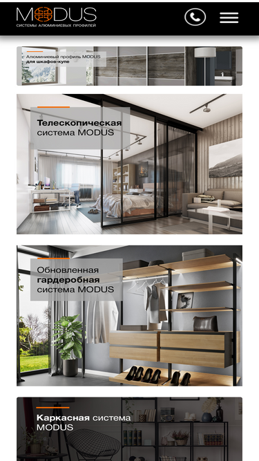 компания modus предлагает широкий ассортимент алюминиевых профилей и комплектующих для изготовления шкафов-купе и корпусной мебели.