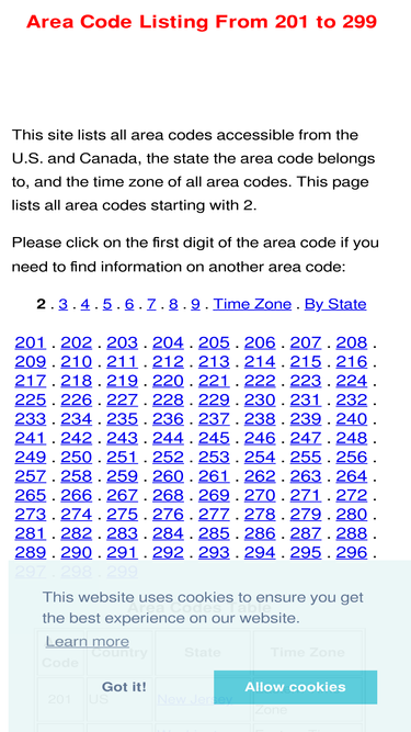 74%lists u.s. and canada area codes, the state the area code belongs to, and the time zone of all area codes starting with 2.