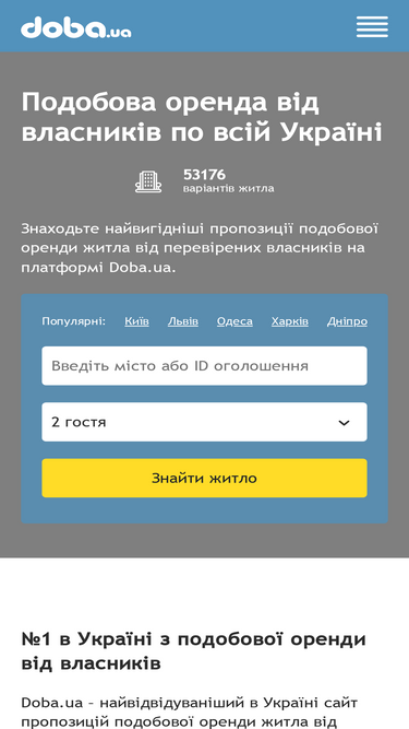 95%Зняти квартири подобово в Україні без посередників на порталі Roomer.UA.Online бронювання. Квартири подобово у всіх містах України: Київ, Львів, Одеса, Харків, Дніпропетровськ, Донецьк, Запоріжжя, Рівне та інші
