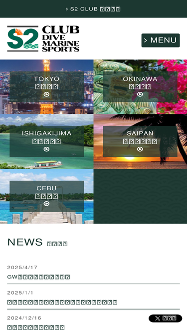 ダイビングライセンス取得コースやダイビングツアーなどを実施する東京都にあるスキューバダイビングショップ S2 CLUBです。