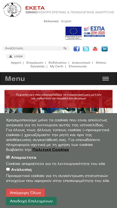 98%Το Εθνικό Κέντρο Έρευνας και Τεχνολογικής Ανάπτυξης (ΕΚΕΤΑ), ιδρύθηκε το 2000, είναι ένα από τα κορυφαία ερευνητικά κέντρα της Ελλάδας και βρίσκεται μέσα στη λίστα με τους TOP-20 ερευνητικούς φορείς της Ε.Ε. στην προσέλκυση πόρων από ανταγωνιστικά ευρωπαϊκά προγράμματα.