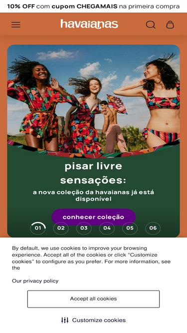 Confira os chinelos, sandálias e produtos incríveis que oferecem conforto e estilo que só Havaianas tem. Aproveite o parcelamento em até 6x.