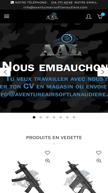 76%AAL est le plus gros vendeur d'Airsoft et d'équipements militaire au Canada! Nous sommes le distributeur des plus grandes marques de Airsoft dont G&G, Raven, Double Eagle, KWA, Tru Spec, Condor, Blue Force Gear, WileyX , Ncstar, PTS, et plusieurs autres!