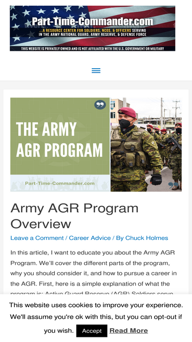 72%On this page, I want to answer some of the most frequently asked questions on our website. Part-Time-Commander.com FAQ # 1: Is This Site an Official Government or Military Website? No. We are a privately owned website. We are in NO WAY endorsed by the government or any military agency. All views are simply my