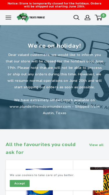 98%Craving Australian treats? Shop Allen's Lollies, Arnott’s Shapes, Cadbury Chocolates, Milo, Nutri-Grain, Tim Tams, Vegemite & more! Fast flat-rate worldwide shipping—get your Aussie snack fix delivered straight to your door!