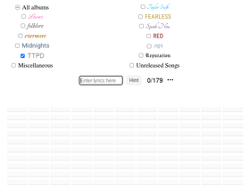 84%Can you guess the Taylor Swift song without any hints? Try it out on all of her albums including Folklore, Midnights, and 1989