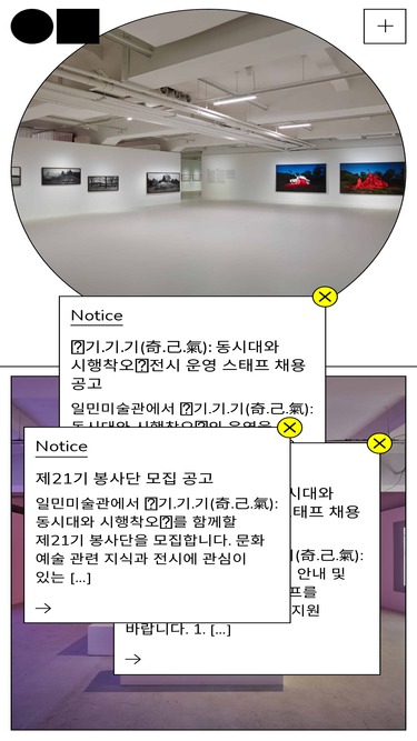 68%일민미술관은 1996년 개관 이래 예술적 실천이 삶을 풍요롭게 가꾼다는 믿음으로 다양한 전시활동을 전개해 왔습니다. 현대미술의 흐름을 읽어내는 중추적 역할을 수행하면서 국내외 미술계에서 주목 받는 동시대 미술관으로 활약하고 있습니다.