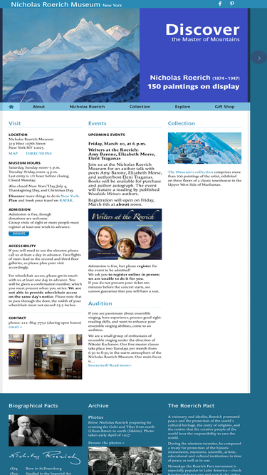 84%the mission of the nicholas roerich museum is to make available to the public the full range of roerich’s accomplishments in the fields of art, spirituality, peacemaking, science, and more.