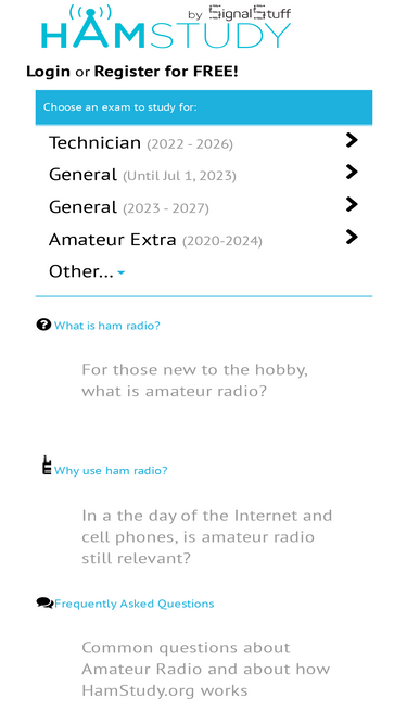 85%hamexam.org offers free practice exams and flash cards to help you study for your amateur radio exam.