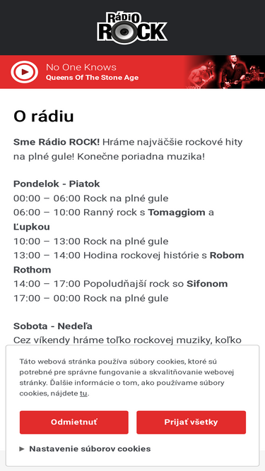 87%Sme Rádio ROCK! Hráme najväčšie rockové hity na plné gule! Konečne poriadna muzika!