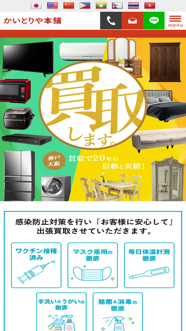 84%伊丹で不用品の買取はかいとりや本舗にお任せ!手軽なLINE査定で無料で事前に買取額を確認できるので安心です。大型家具や冷蔵庫や洗濯機、大型テレビなどの大型家電もしっかり査定・買取り・回収いたします。搬出経路を事前にしっかり確認して対応いたしますので安心してお任せいただけます。もちろん大型家具や家電の買取以外のあらゆるジャンルに対応しておりますので、不用になったものはまとめてご依頼ください。伊丹で出張買取を頼むなら、迅速対応・親切丁寧、地域密着のかいとりや本舗が最適です!