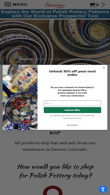 97%Shop the Polish Pottery Outlet store for a huge selection of heirloom quality, handmade Polish Pottery, stoneware, decor, and dinnerware imported from Boleslawiec, Poland for sale. Browse hundreds of patterns from traditional to modern. High quality, durable ceramics. Ships from USA. Visit today!