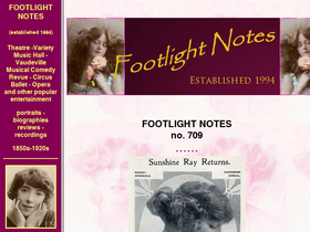 100%footlight notes is about popular entertainment during a period of extraordinary activity in the history of the theatre: the 1850s to the 1920s.
