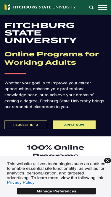 87%At Fitchburg State University, our convenient and affordable online programs are ideal for working professionals. Explore your options and learn more here!